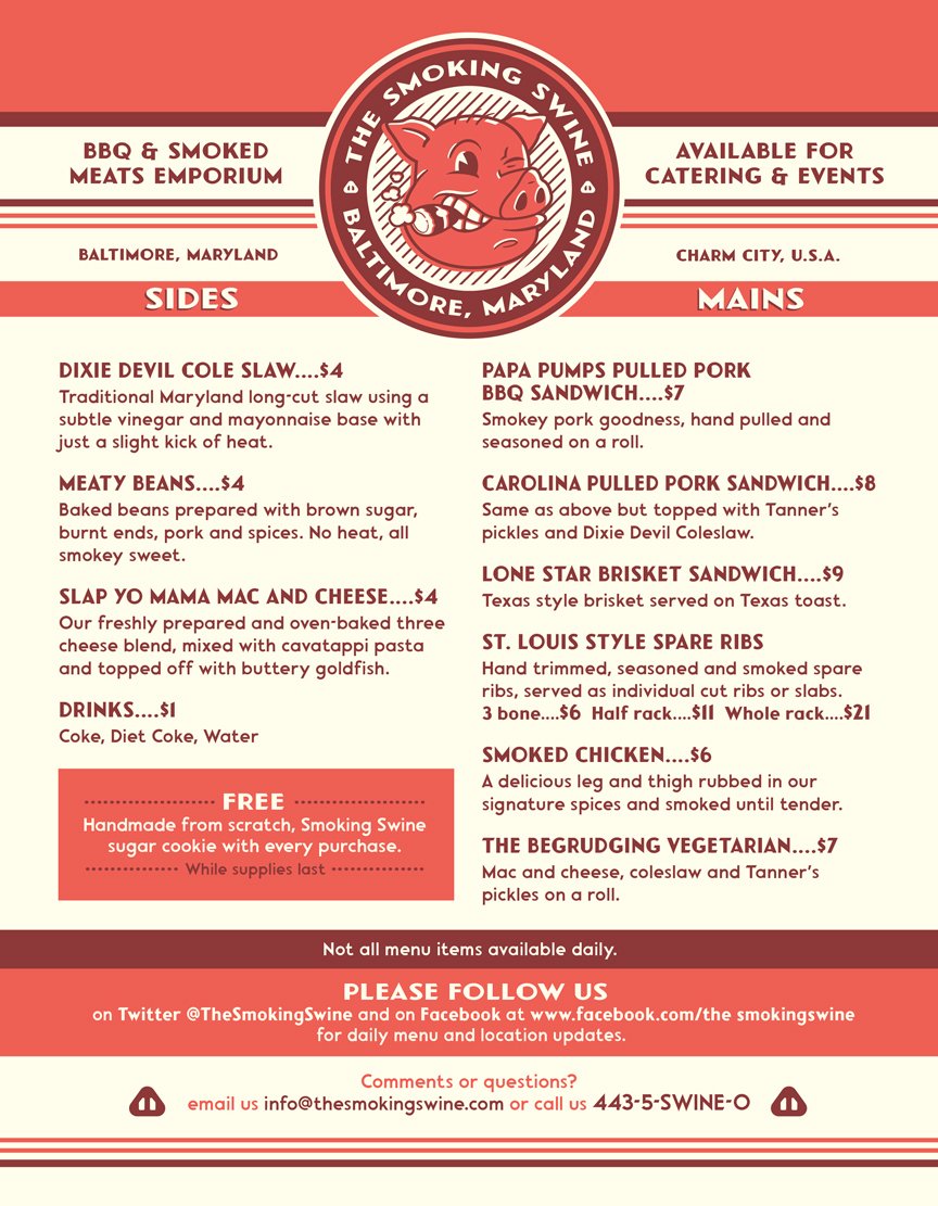 Final logo done for The Smoking Swine, a Baltimore-based food truck and catering company.