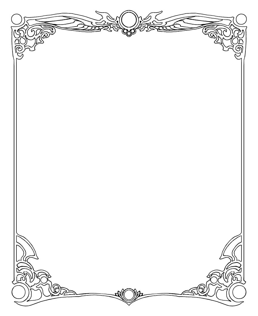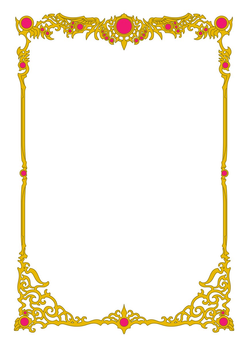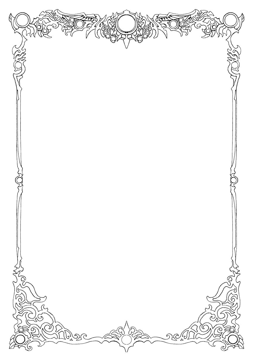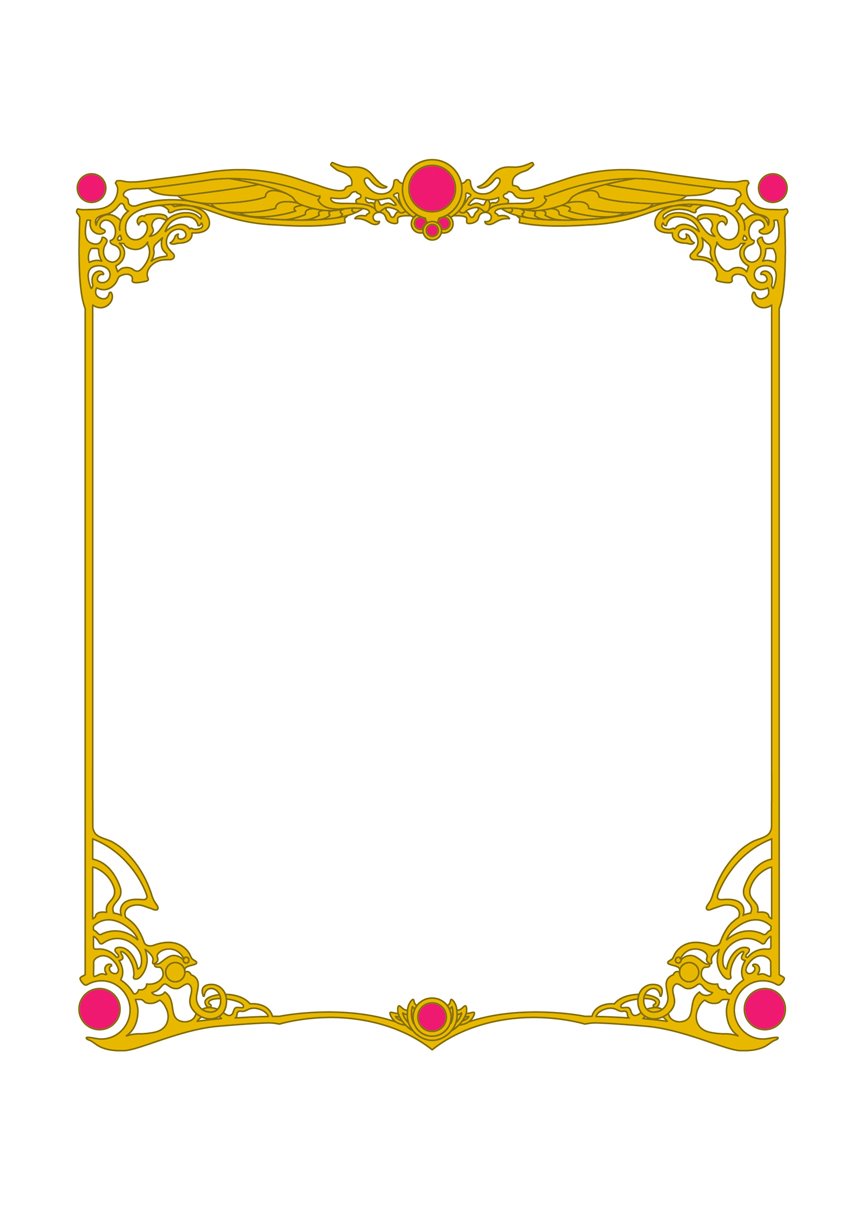 This is the original frame I pulled together from several interior images. It's a very rough, black and white approximation of a frame used by CLAMP several times within the set, especially in the illustration collection. As the original versions are all hand drawn and all have slight variations, I had to cobble them together into something uniform that I could manually trace in Illustrator. I knew we were going to be foil stamping this frame, and a hand drawn frame was not going to be exact enough for that purpose.