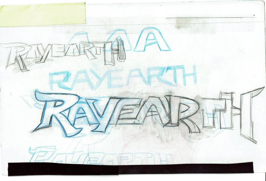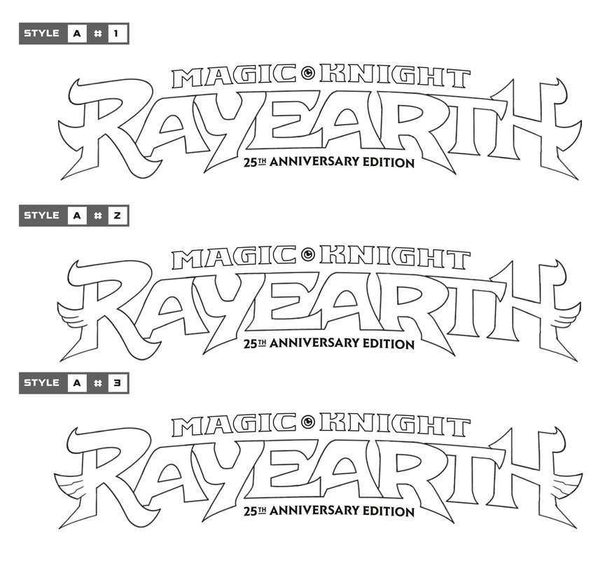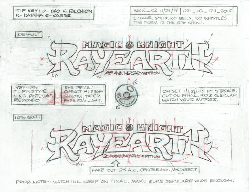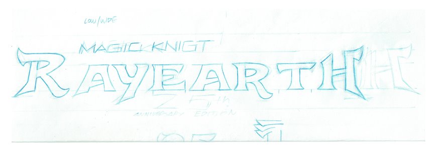 As near as I can tell, this is the very first sketch i made for the Rayearth logo--or at least the first sketch for the version that was eventually made. I had a pretty clear idea from the start what I wanted it to look like, especially the overall shape and feel of it. Considering that I was designing this while designing the covers and box set at the same time, I had to take into consideration how they would all work together in a cohesive fashion.