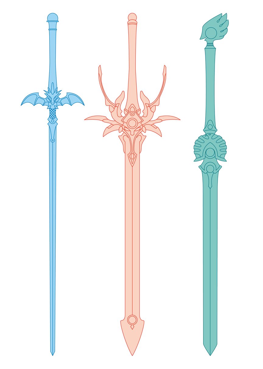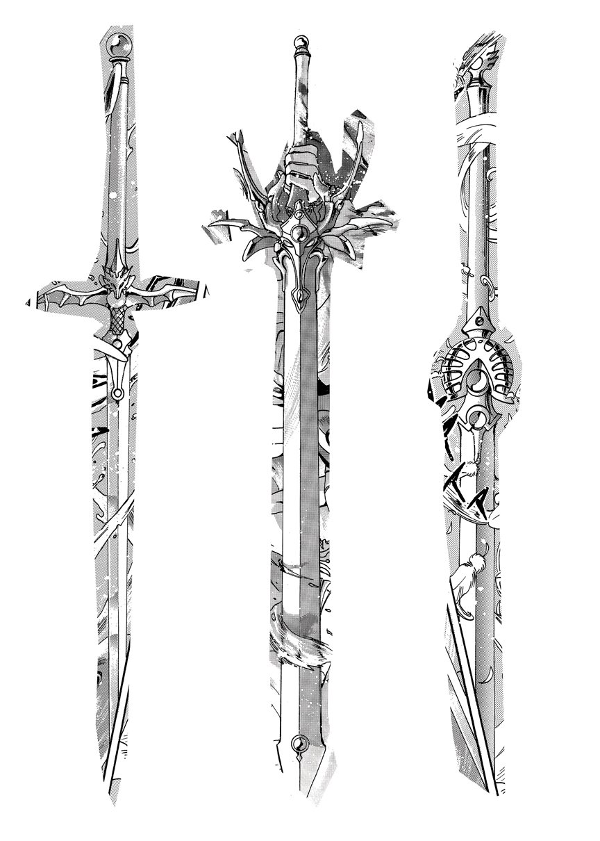 This image was from (I think) the illustration collection, and it proved to be invaluable because it showed a proper scale and comparison between the swords and their size. I originally had drawn them all too similar in size, and this image helped me considerably in fixing that.